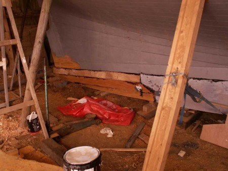 The ballast keel had been bolted under the wood keel for about a month now. It has been sticking out and looking a bit out of place without the deadwoods which fill in the spaces fore and aft of the lead and finish off the underwater profile with a fair curve.