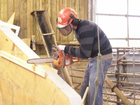 The picture shows Charlie cutting a notch in the upper deadwood where the propshaft goes through.