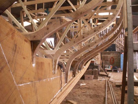 We're coming to the end of the sawn frames now. They're all assembled with just number 6 waiting for its laminated floor to be fitted to complete the set. We've had some really good oak for these with the grain following the curves of the frames well. This makes for great strength in the hull.