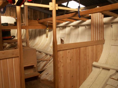 Also the partial bulkhead which separates the saloon from the galley and chart table is now more or less in place as shown in the picture.