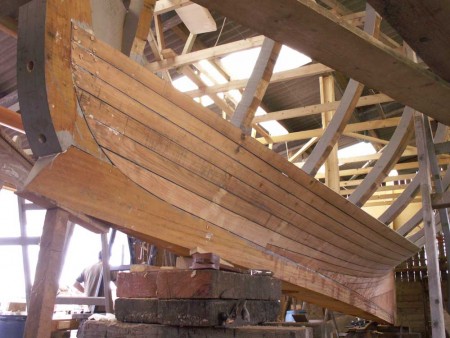 The picture shows the planking on the port side. From the garboard 11 planks have been fitted and all are full length. We're pleased as this is more than we were expecting. All the rest apart from the rubbing strake will be in 2 lengths.