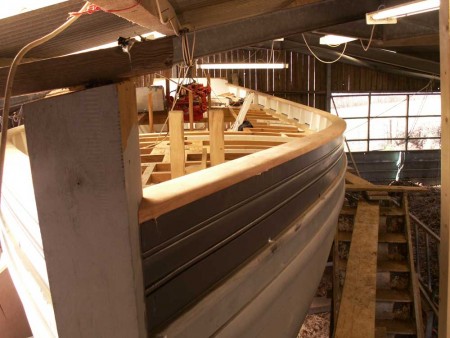 Meanwhile, back in the shed Mark was fitting the capping rails which are now looking very smart on the painted bulwarks, and Barnaby was continuing on the quarter berth.