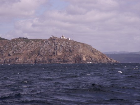 Spain has been a beautiful discovery…………. The Rias Altas and Bajas providing stunning scenery and many natural harbours . And surprisingly empty too. Plenty of space in the anchorages and most marinas only half full. I don’t know if this is still the effects of the financial crash, but it’s nice not to be fighting for space. Working our way along the Rias Altas on the north coast we had frequent mist and fog to contend with which is normal for this part of the world. Hot when the sun came out and cool in the mist. Nights were also cool with the moisture in the air. We saw dolphins most days before going around the corner past Finisterre and hardly at all since. The photo shows us passing Cabo Finisterre.